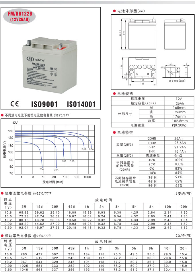 鸿贝蓄电池FM(6V/12V)系列产品特性